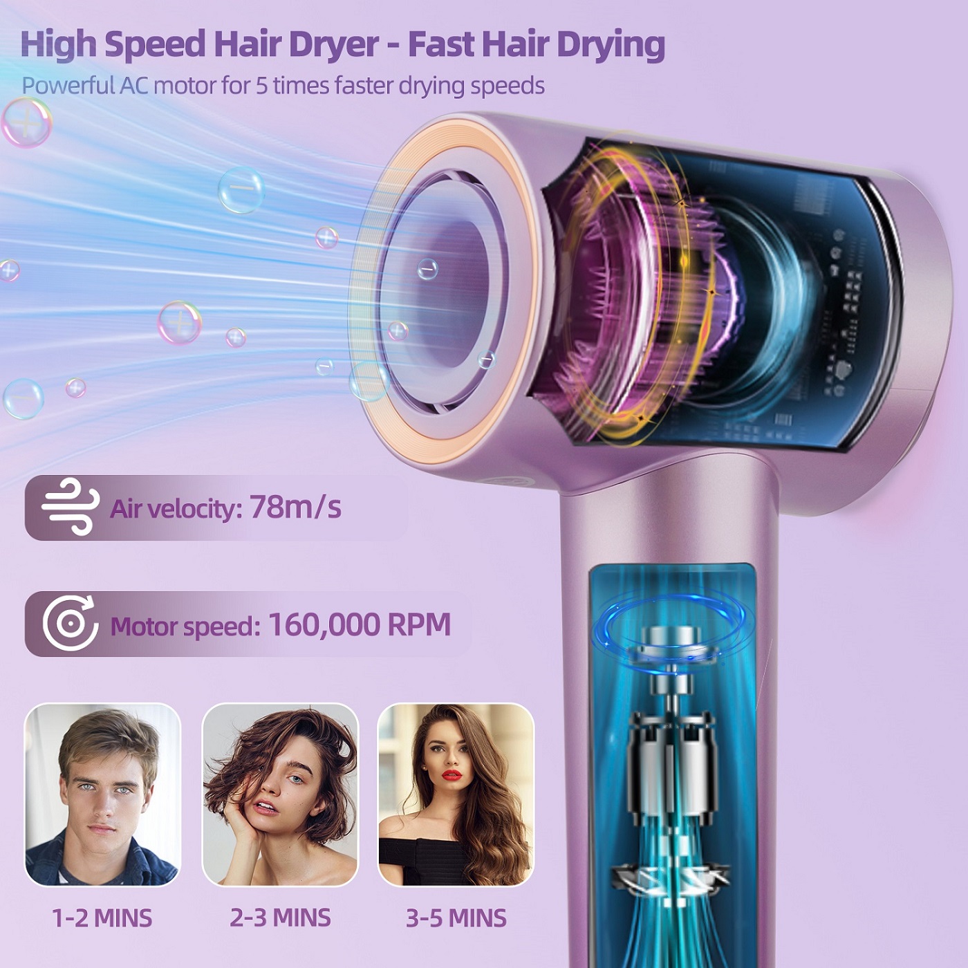 130000RPM powerful brushless motor for fast drying